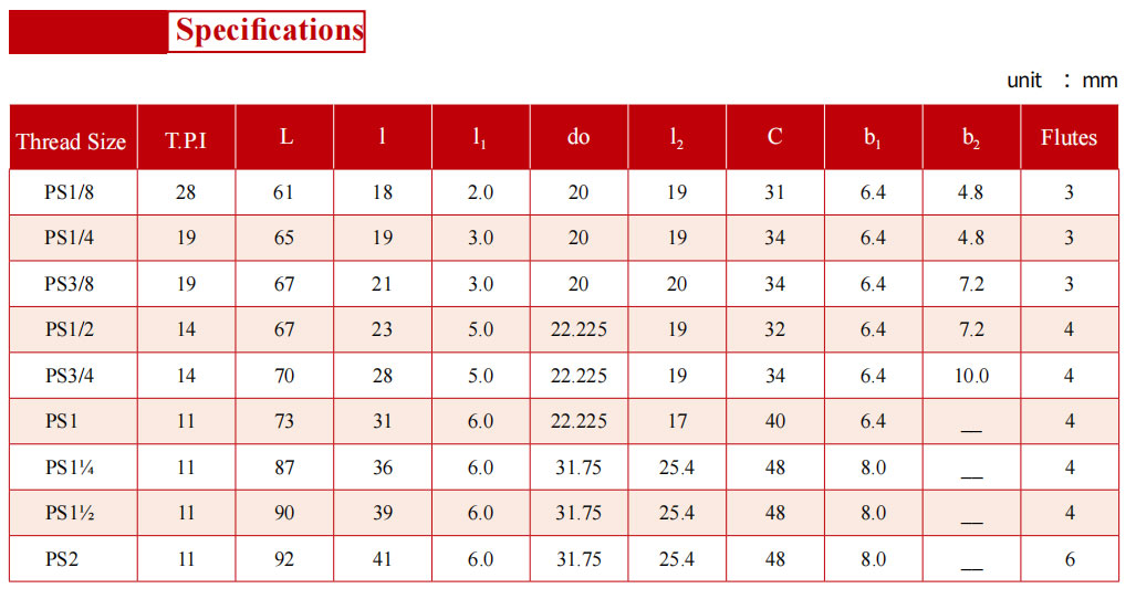 PRODUCT current location:Home > PRODUCT > PS Straight Pipe Thread Tap with Cylinder Shank with Keyslot