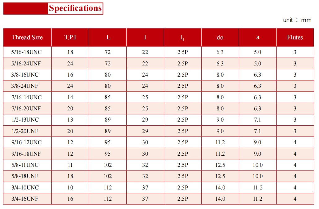 PRODUCT current location:Home > PRODUCT > United Spiral Flute Machine Tap with Thin Shank (ISO529 Standard Overall Dimensions)