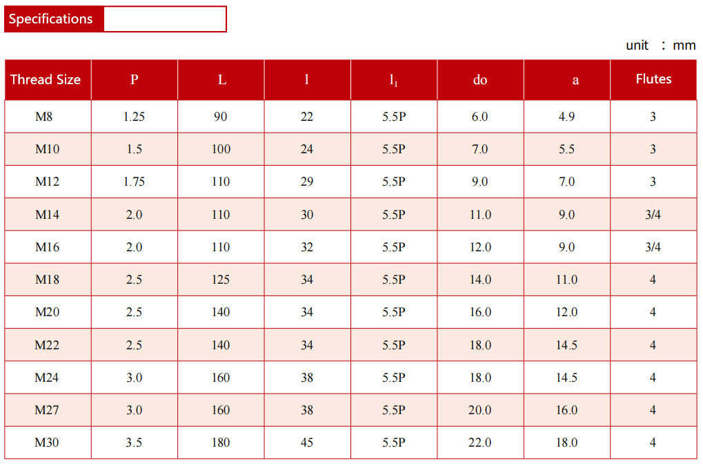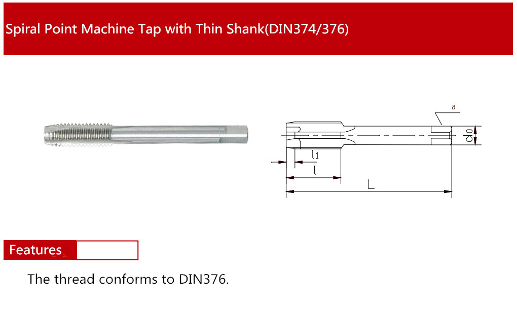 Spiral Point Machine Tap with Thin Shank(DIN374-376)
