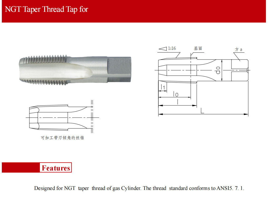 該系列產品加工的螺紋符合ANSI5.7.1中NGT氣瓶錐螺紋標準。