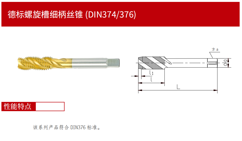 DIN374/376德標(biāo)螺旋槽細(xì)柄細(xì)柄絲錐