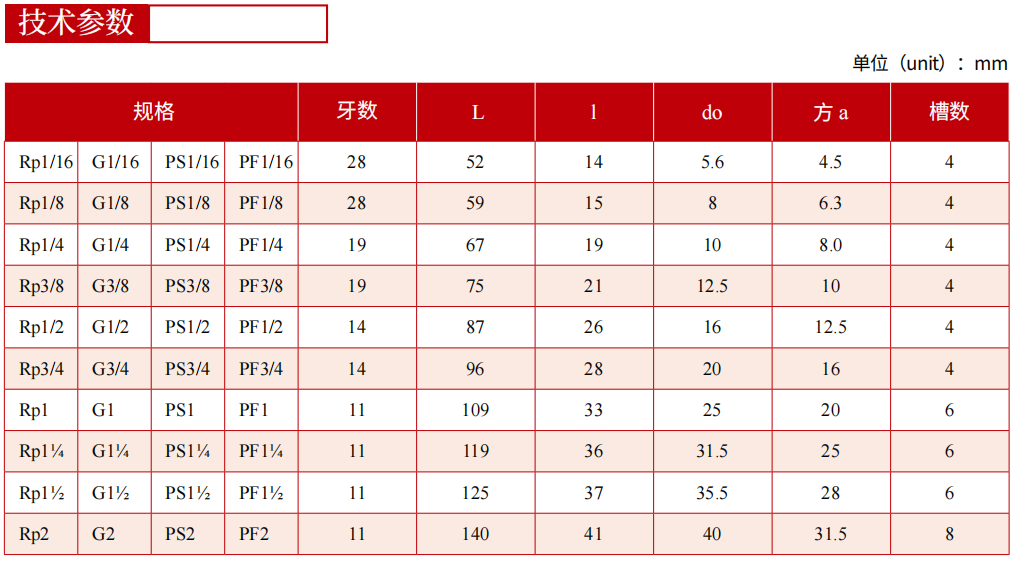 該系列絲錐產(chǎn)品基本尺寸符合 GB/T20333-2006/IS02284:1987 標(biāo)準(zhǔn)的要求,Rp 適用于用螺紋密封的圓柱內(nèi)螺紋的加工,加工出的螺紋符合 GB/T7306.1-2000 eav IS07-1:1994 標(biāo)準(zhǔn)的要求G為非螺紋密封的管件圓柱內(nèi)螺紋的加工,螺紋符合 GBT7307-2001 eqv IS0228-1:1994 。