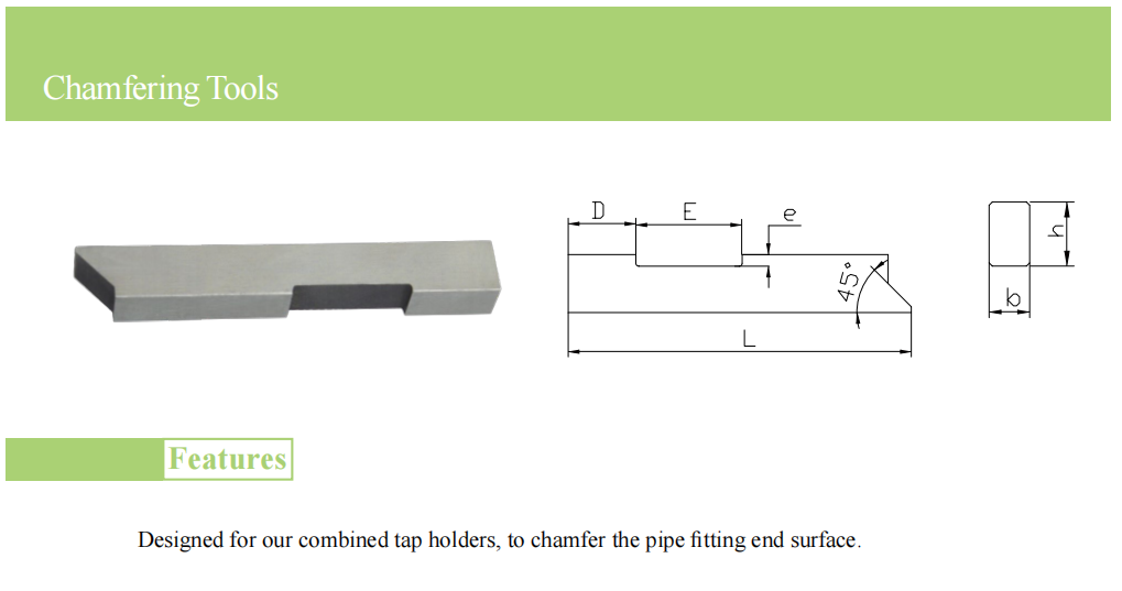 該系列產(chǎn)品與組合絲錐接頭等產(chǎn)品配套使用,用于管件螺紋端面倒角。